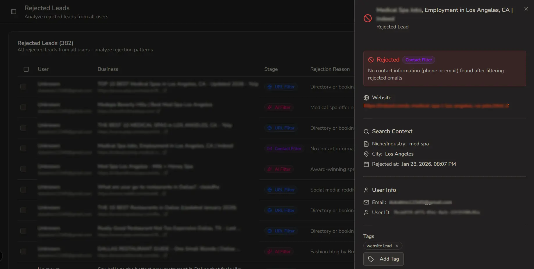 Exclude or require specific tech stack, tags, or page structure.